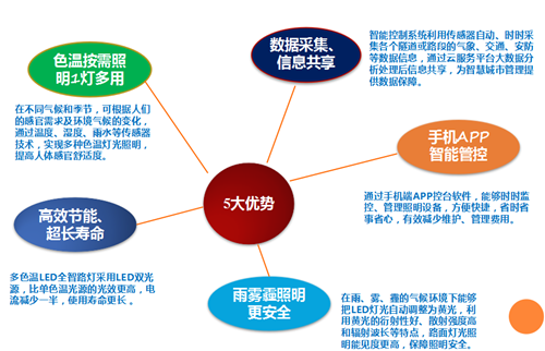 在能源日益短缺,溫室效應越來越嚴重,國家和地方政府大力號召節(jié)能減排、綠色照明的情況下,我司通過自主知識產(chǎn)權(quán)獨立研發(fā)互聯(lián)網(wǎng)+多色溫防霧霾LED全智能路燈系統(tǒng),有效的控制能源消耗,提高路燈壽命,降低維護和管理成本,具有根據(jù)車流量自動調(diào)節(jié)亮度、遠程照明控制、故障主動報警、燈具線纜防盜等功能,能夠大幅節(jié)省電力資源,提升公共照明管理水平,節(jié)省維護成本。