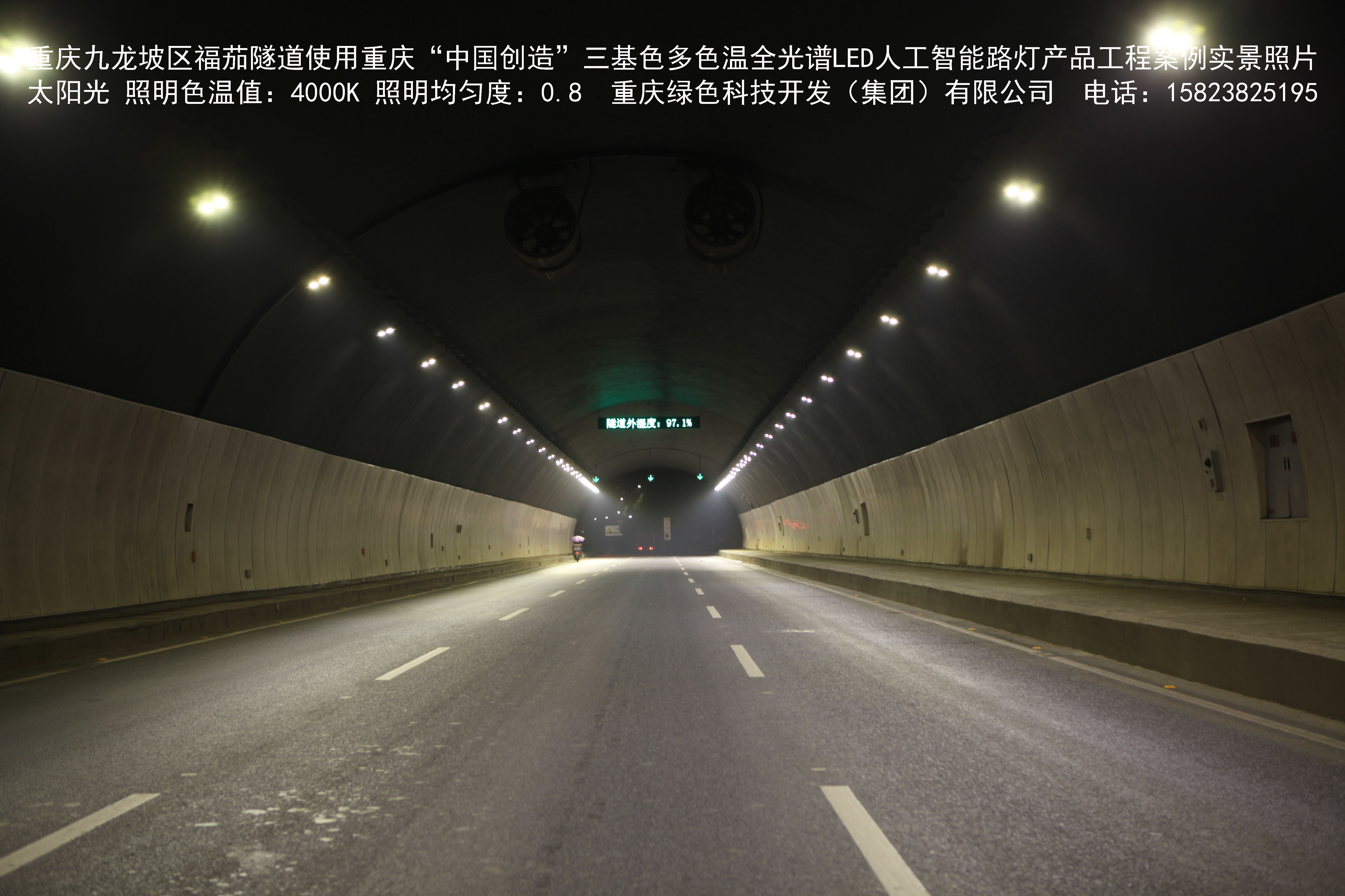 該產(chǎn)品已先后在重慶市渝中區(qū)濱江路洪崖洞沿線(魁星樓立交橋至湖廣會(huì)館立交橋)、菜袁路,合川全城區(qū),永川新城區(qū),渝中區(qū)龍家灣、黃沙溪、鵝嶺、袁家崗草坪、朝千隧道,南岸區(qū)茶園渣場(chǎng)路、風(fēng)臨路、鵝風(fēng)支路,江津區(qū)雙福園區(qū)津馬大道,銅梁區(qū)龍騰大道,九龍坡區(qū)石新路,石坪橋、陳家坪、福茄、九龍、五臺(tái)山、美茵河谷、二郎、袁家崗下穿隧道,沙坪壩區(qū)漢渝路下穿隧道,陸軍軍醫(yī)大學(xué)全校區(qū)道路,豐都縣迎賓大道,G50重慶渝涪高速公路全線收費(fèi)站、服務(wù)區(qū)及鐵山坪、華山、黃草山、同心寨、廟堡隧道,G5013渝蓉高速全線收費(fèi)站、服務(wù)區(qū),渝遂高速青木關(guān)隧道,寧夏回族自治區(qū)賀蘭縣全城區(qū)等百余處進(jìn)行了大規(guī)模應(yīng)用,獲得了良好的社會(huì)效益。