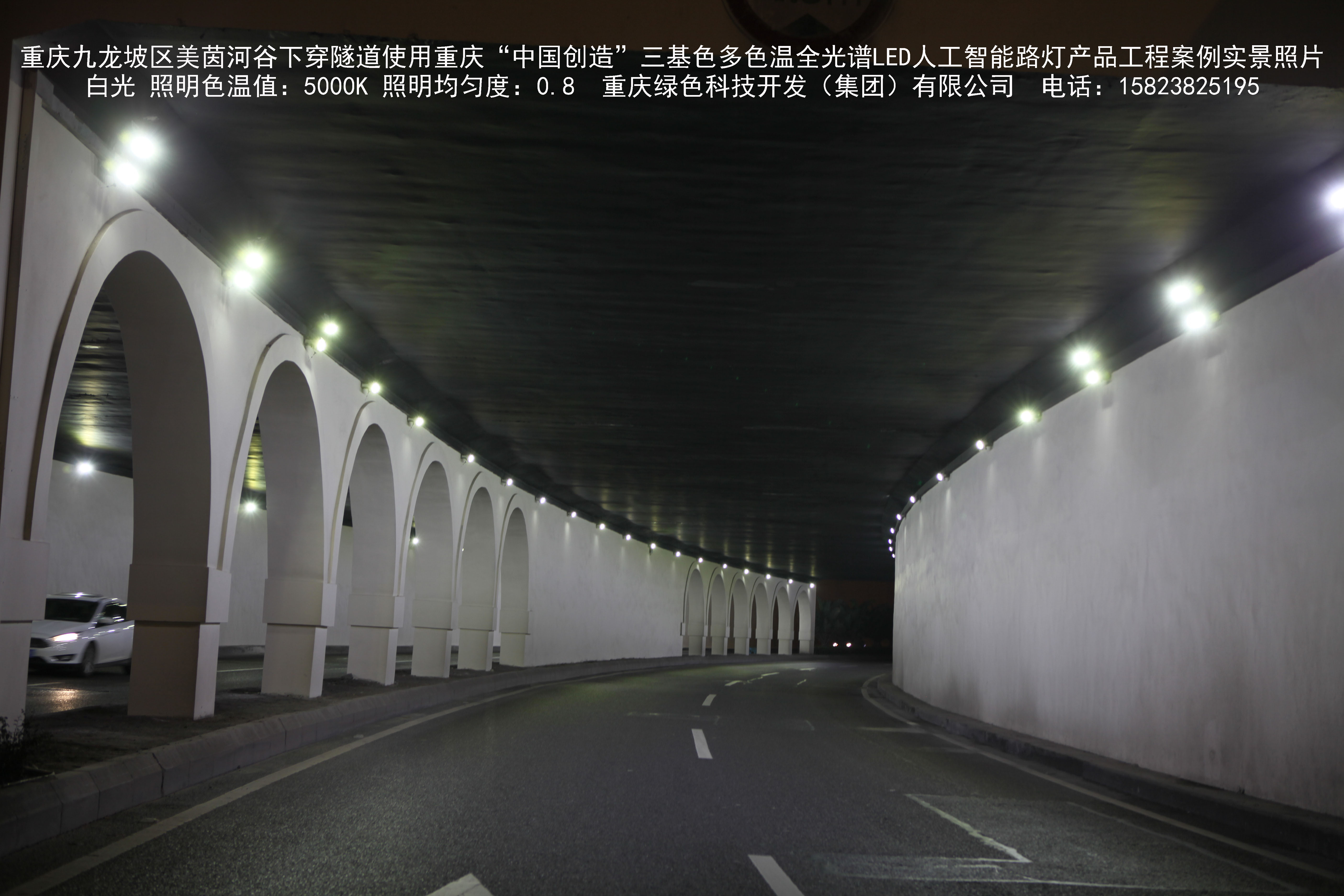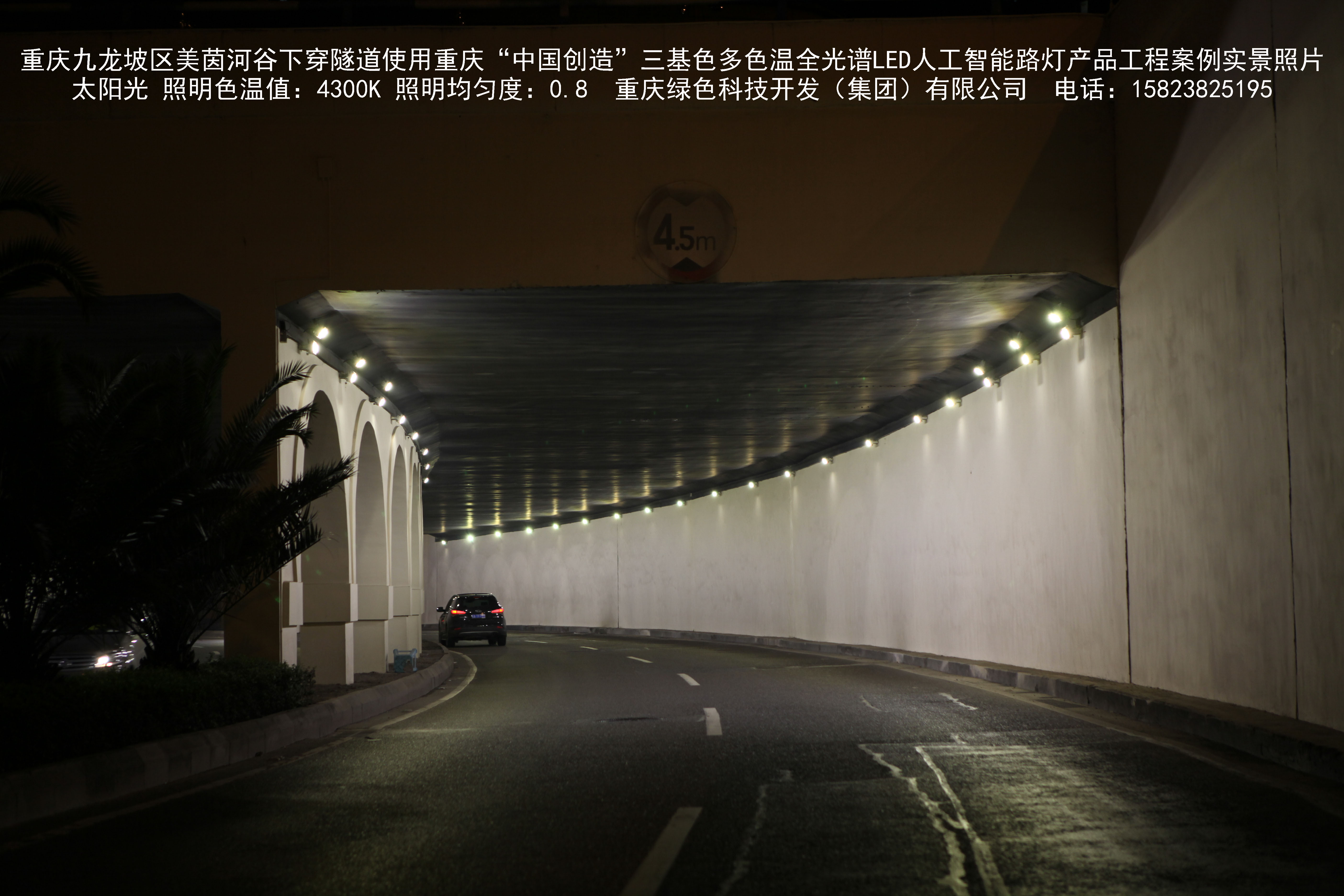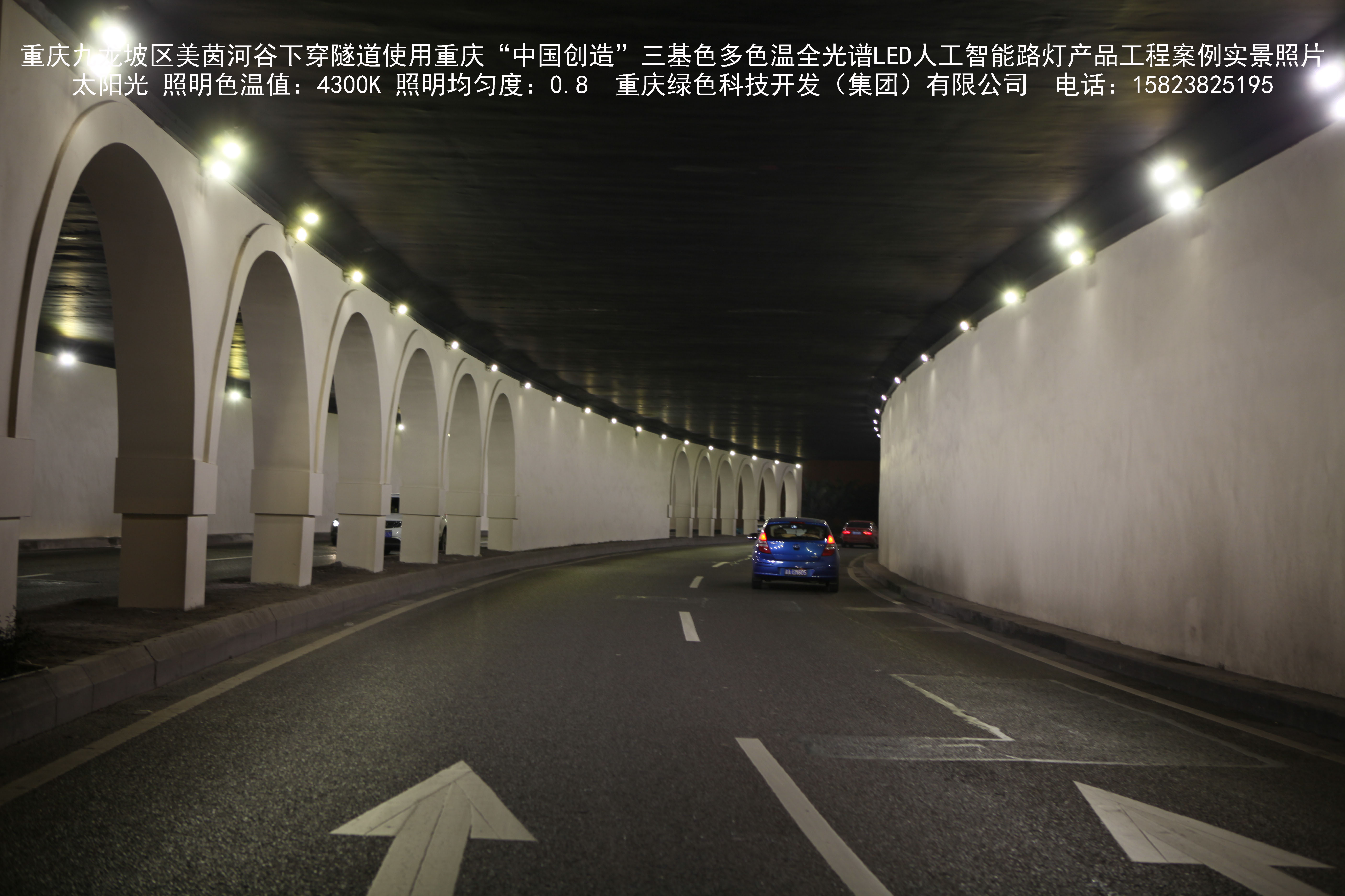 重慶市九龍坡區(qū)美茵河谷下穿隧道使用我司研造的重慶“中國(guó)創(chuàng)造” 三基色多色溫全光譜LED人工智能路燈產(chǎn)品工程案例