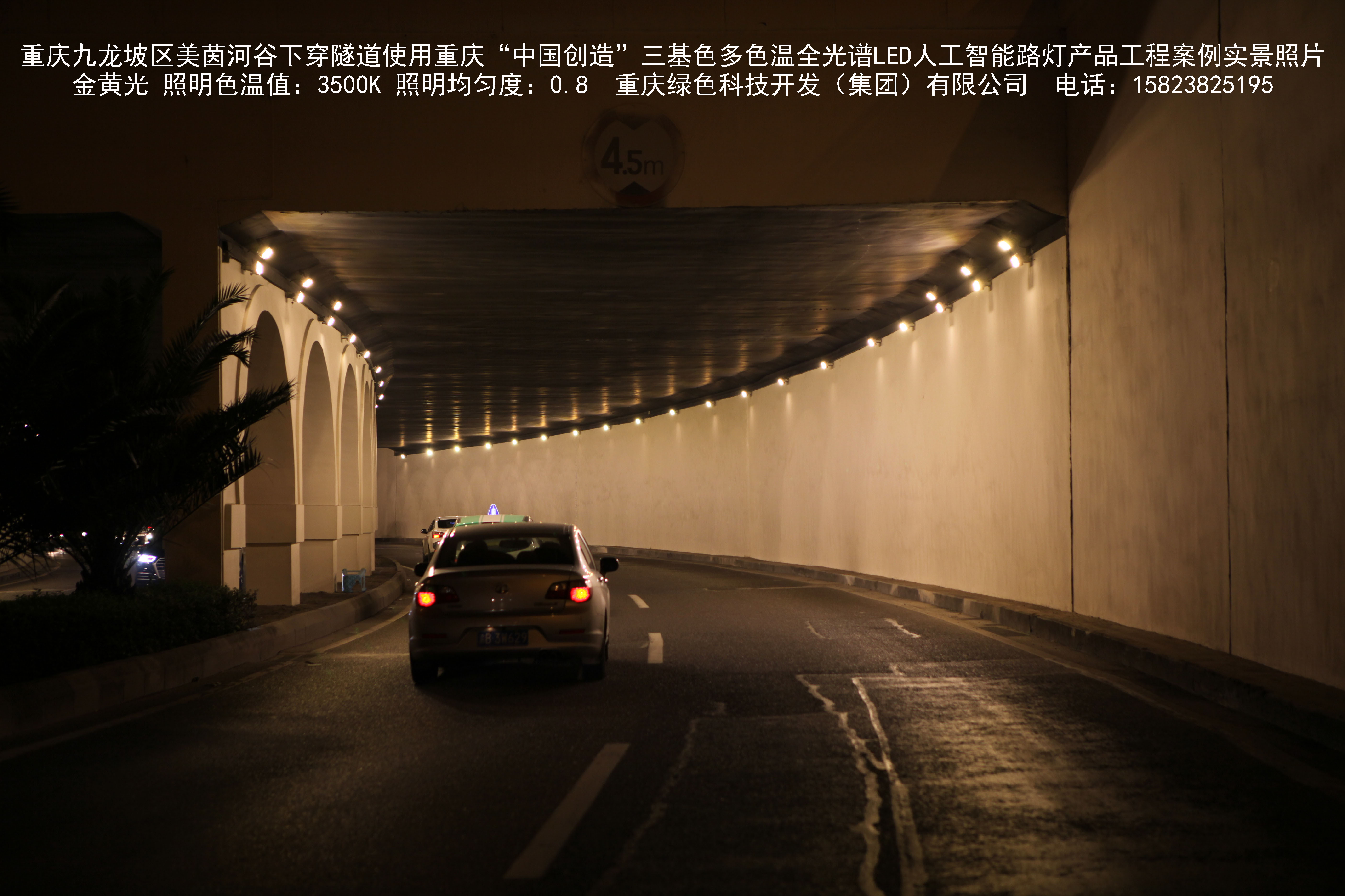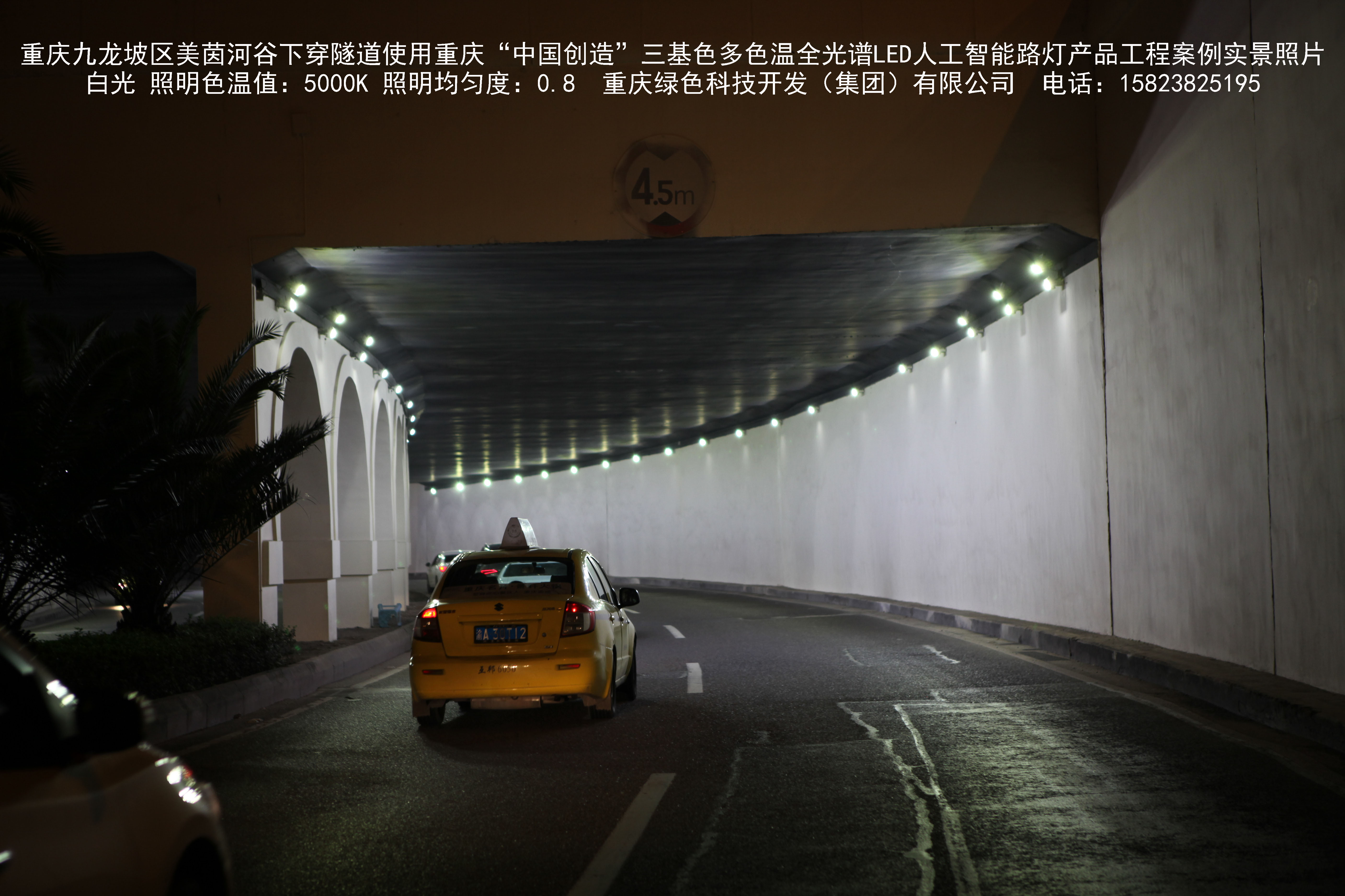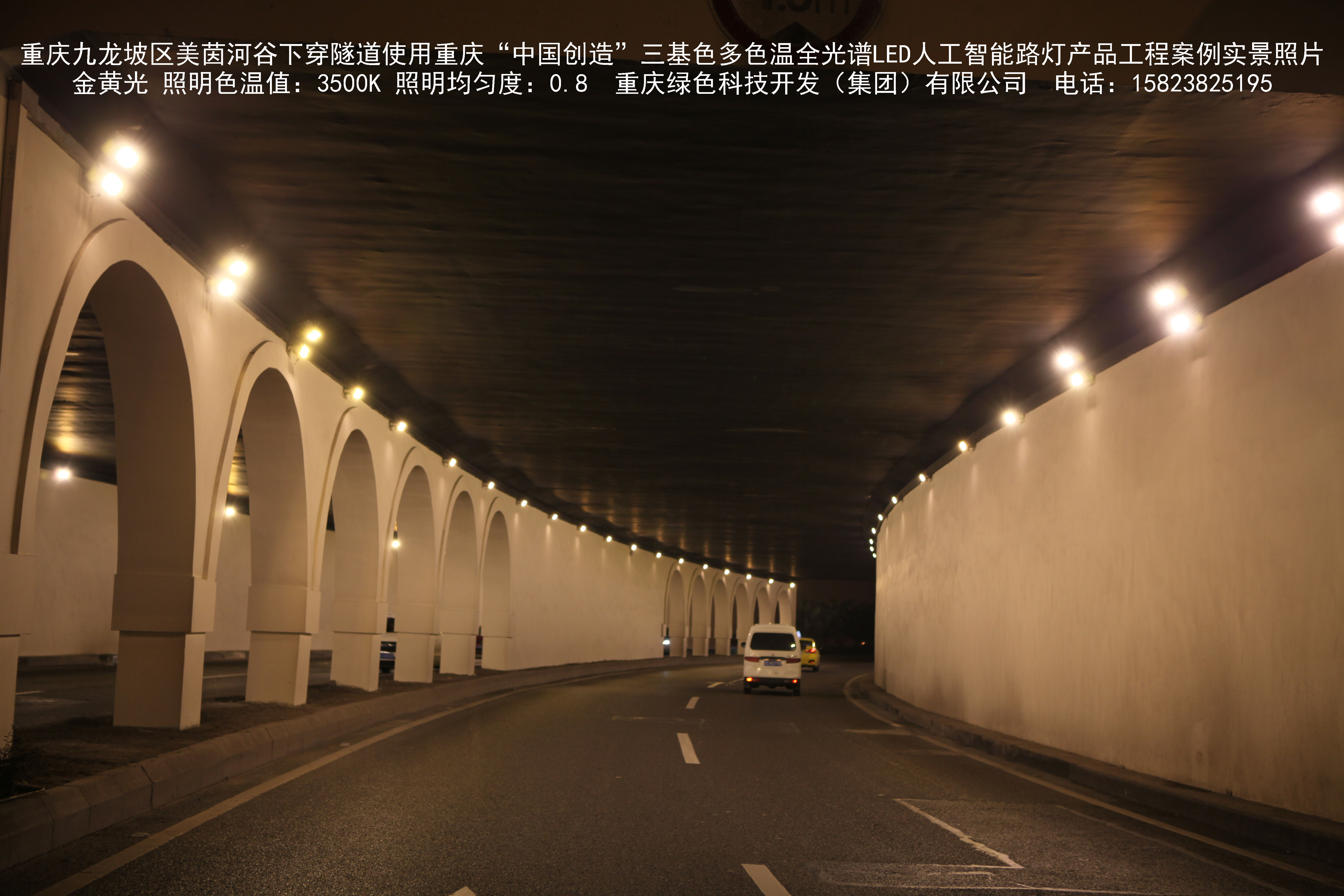 重慶市九龍坡區(qū)美茵河谷下穿隧道使用我司研造的重慶“中國(guó)創(chuàng)造” 三基色多色溫全光譜LED人工智能路燈產(chǎn)品工程案例