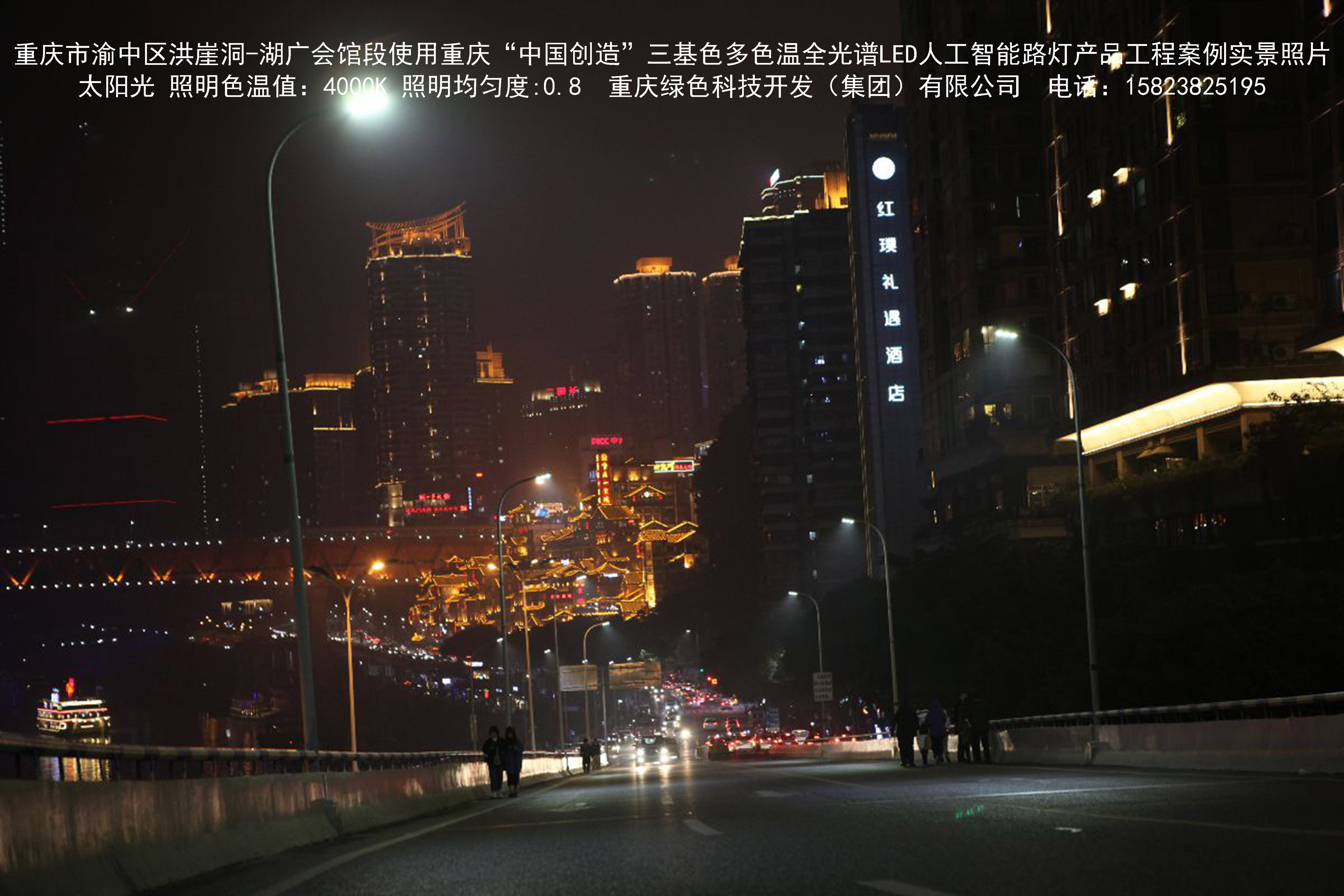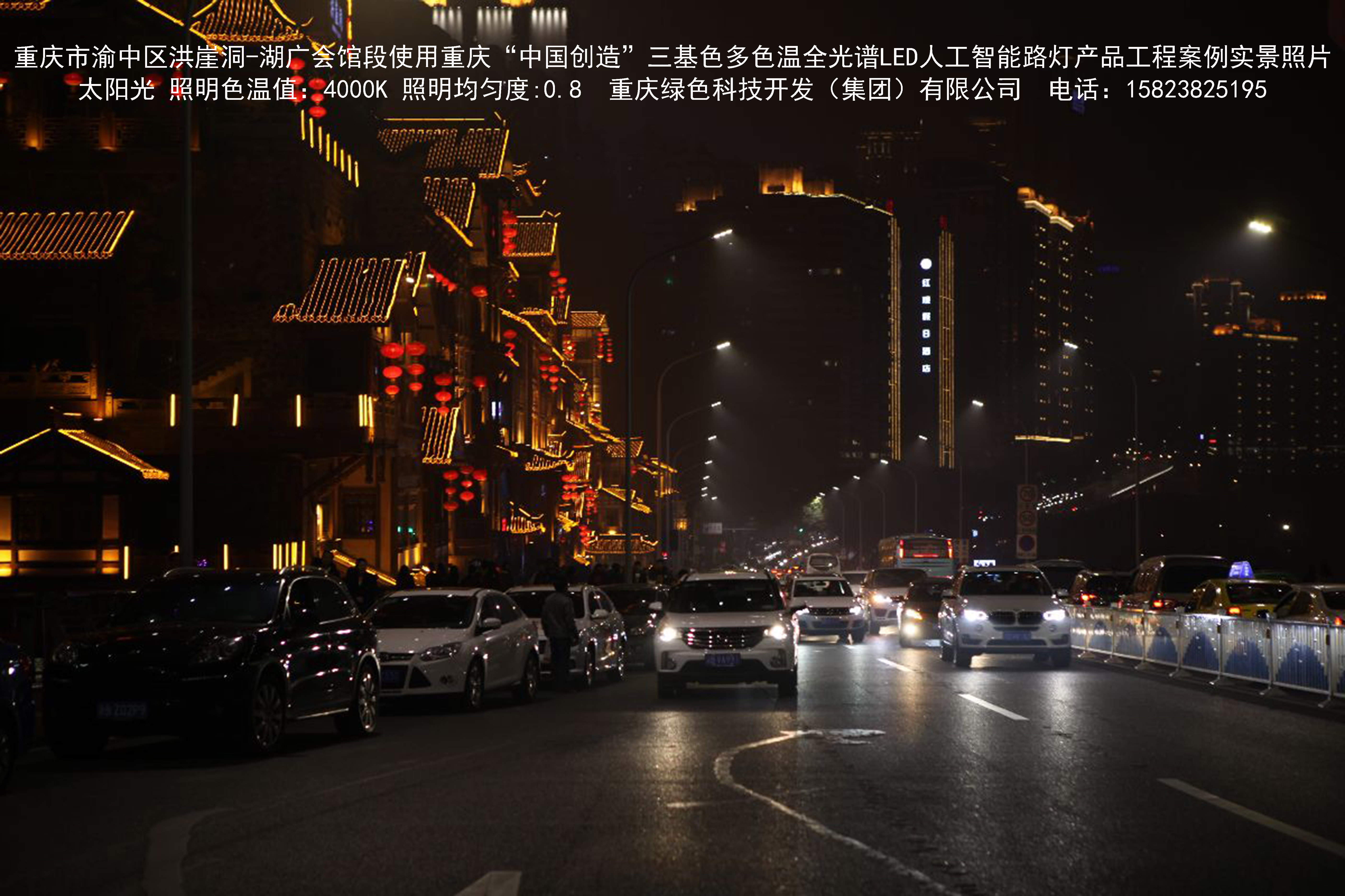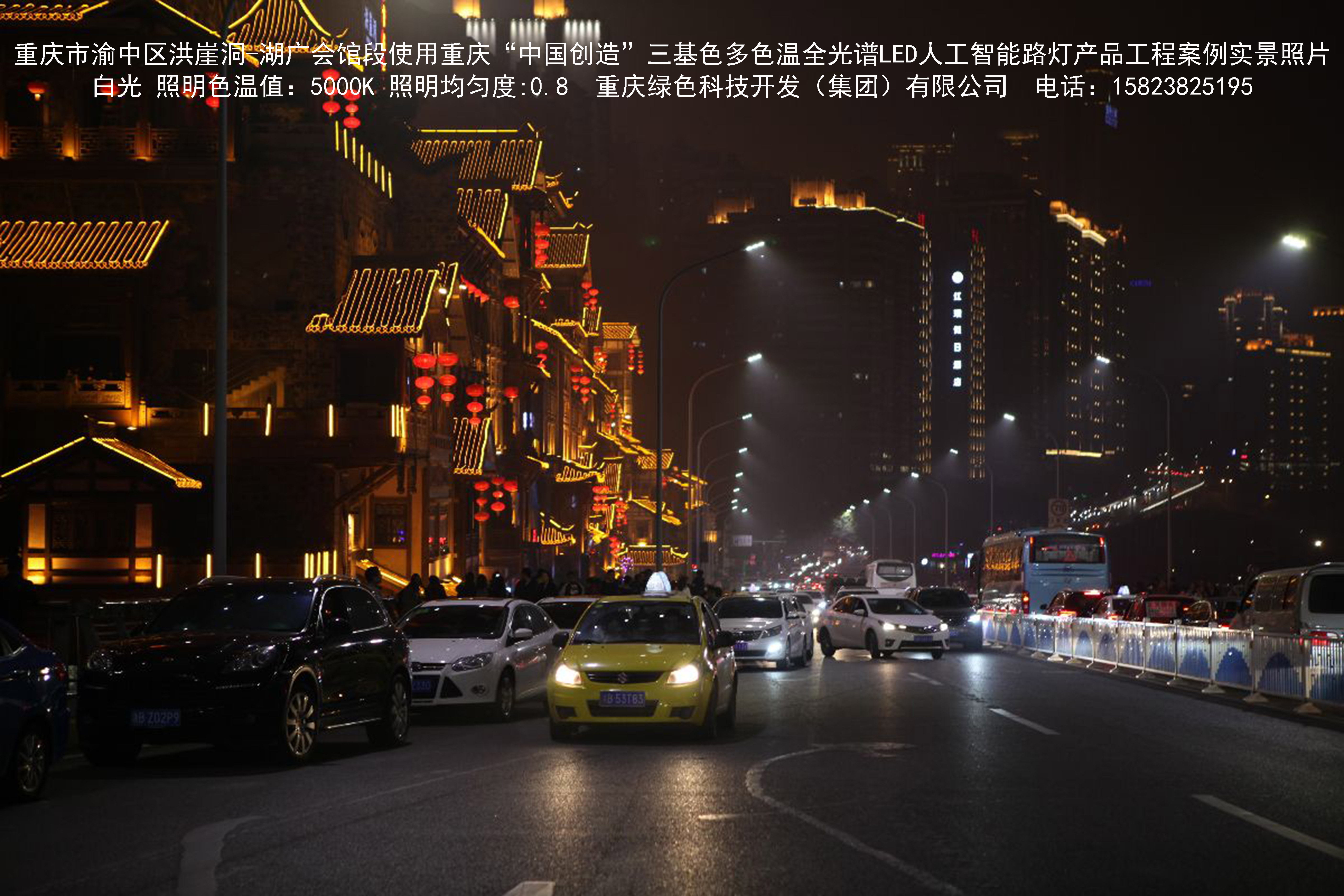 重慶市渝中區(qū)洪崖洞-湖廣會(huì)館段使用我司研造的重慶“中國(guó)創(chuàng)造” 三基色多色溫全光譜LED人工智能路燈產(chǎn)品工程案例