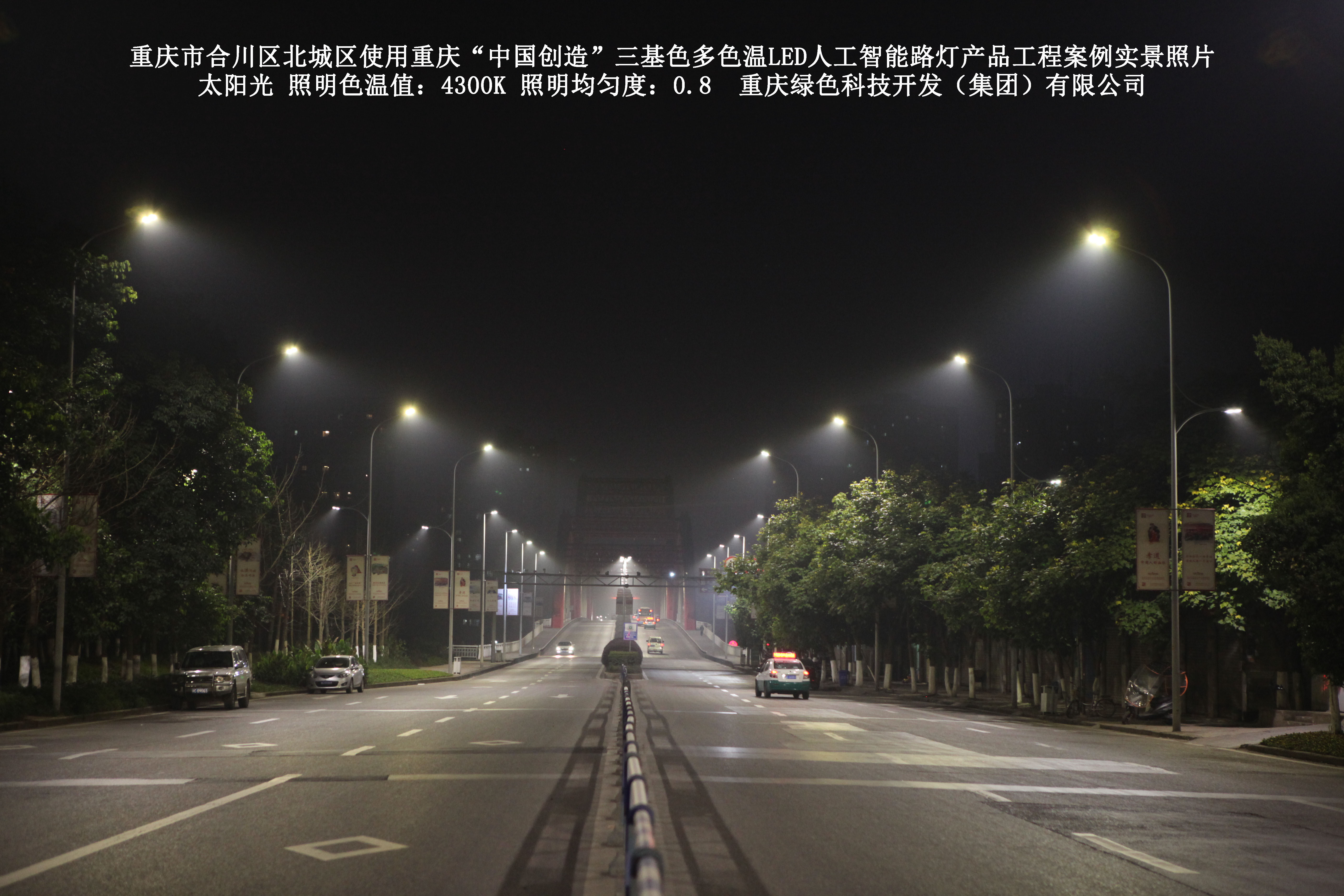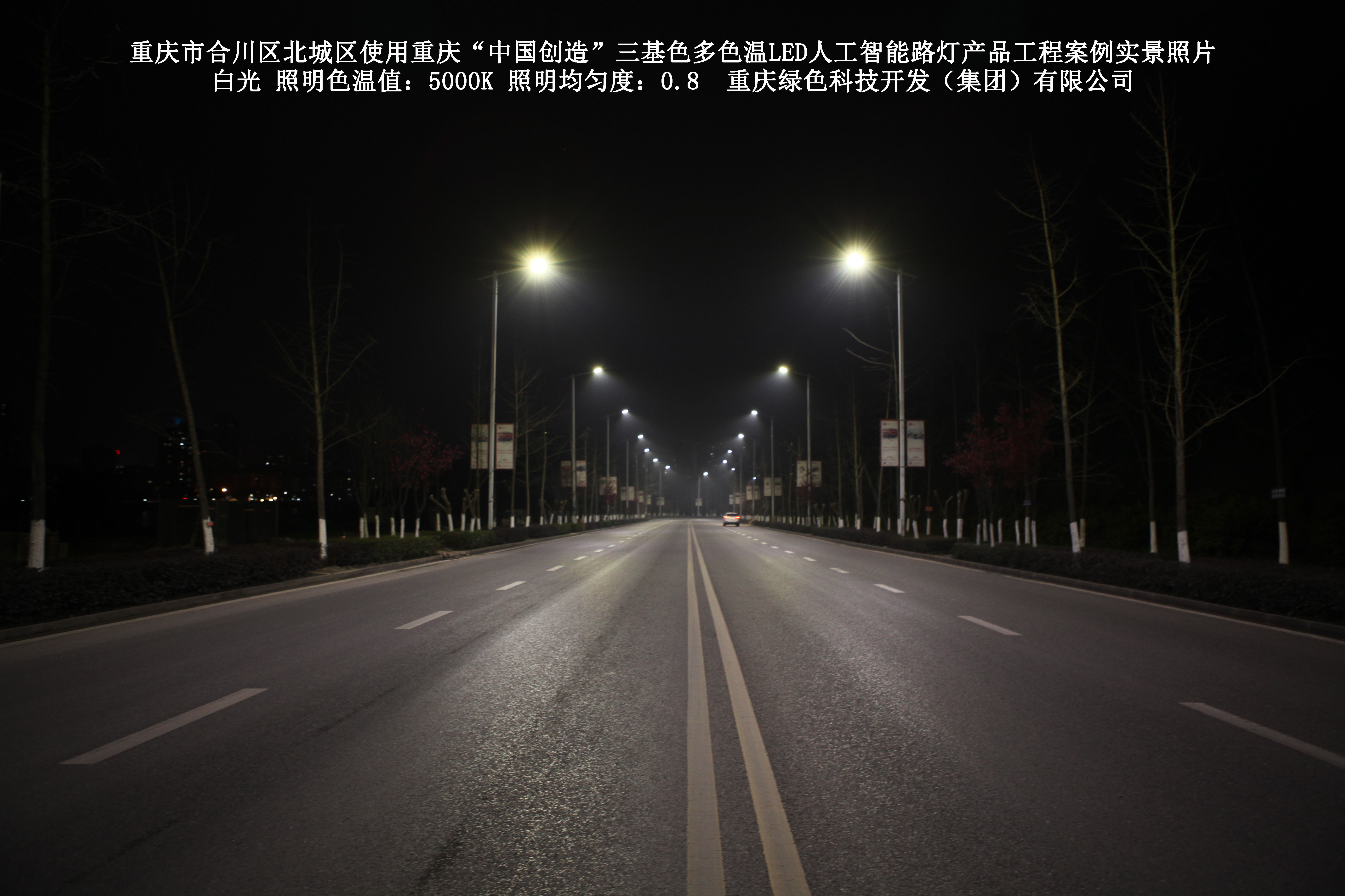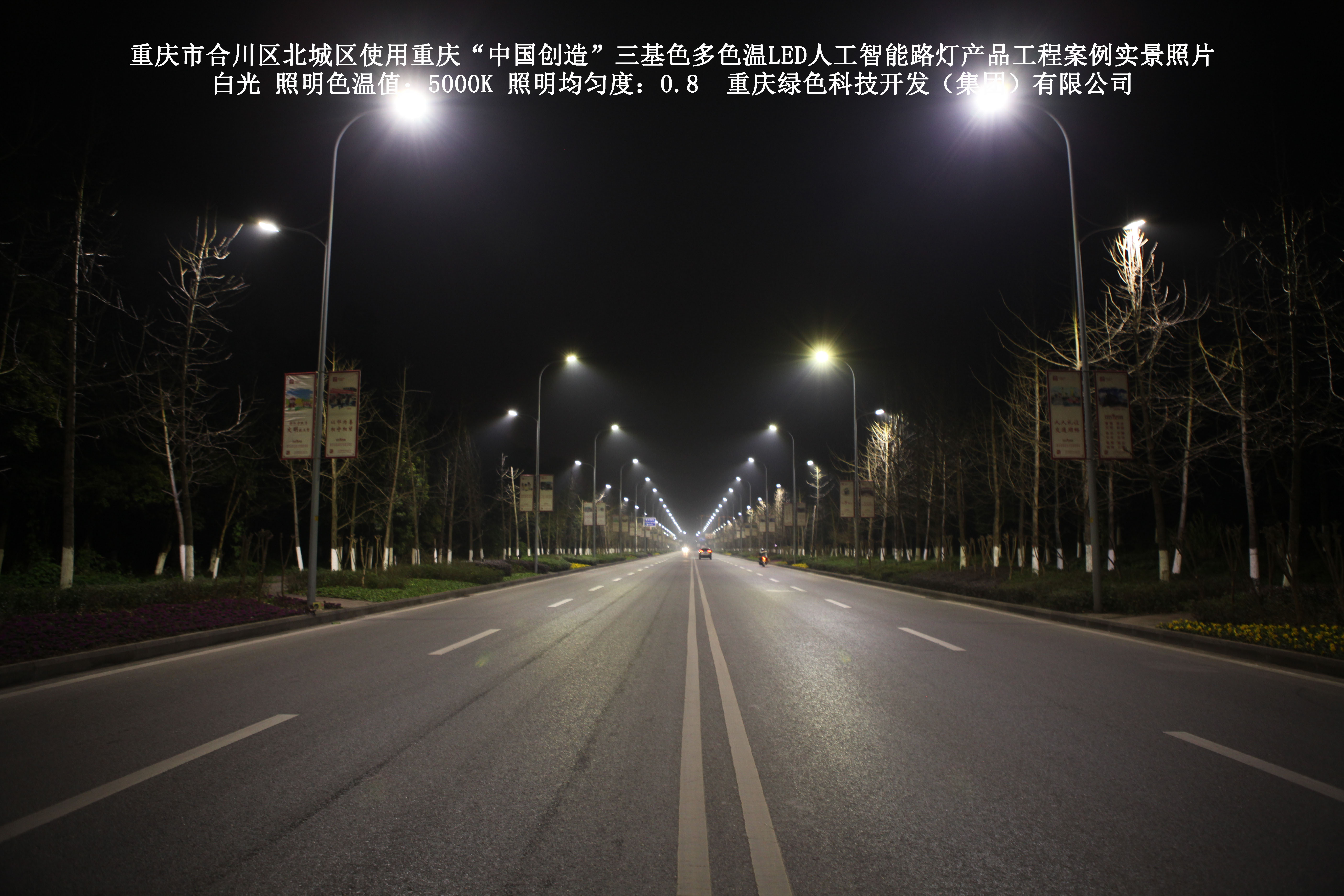 重慶市合川北城區(qū)使用我司研造的重慶“中國創(chuàng)造”三基色多色溫 LED人工智能路燈產(chǎn)品工程案例