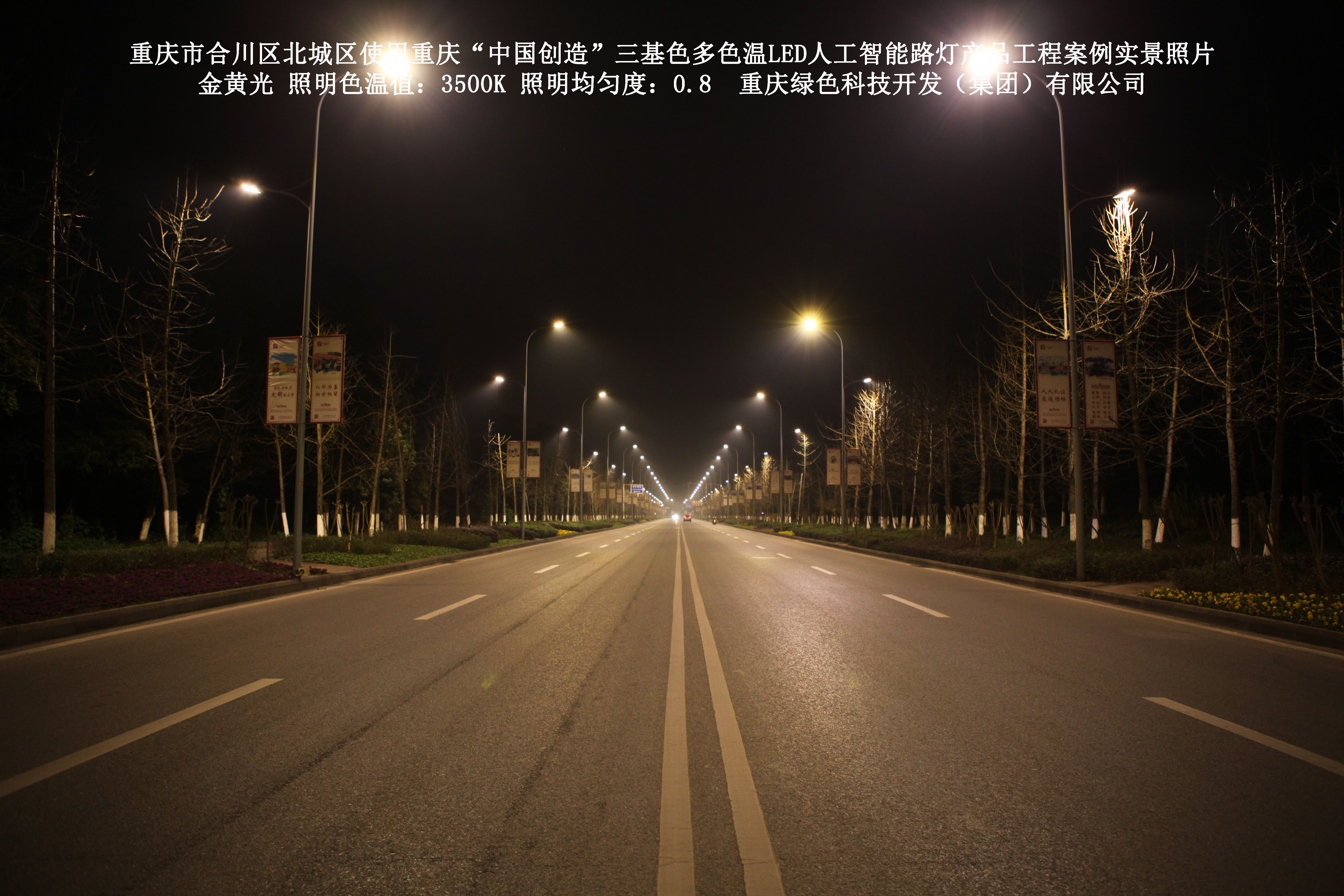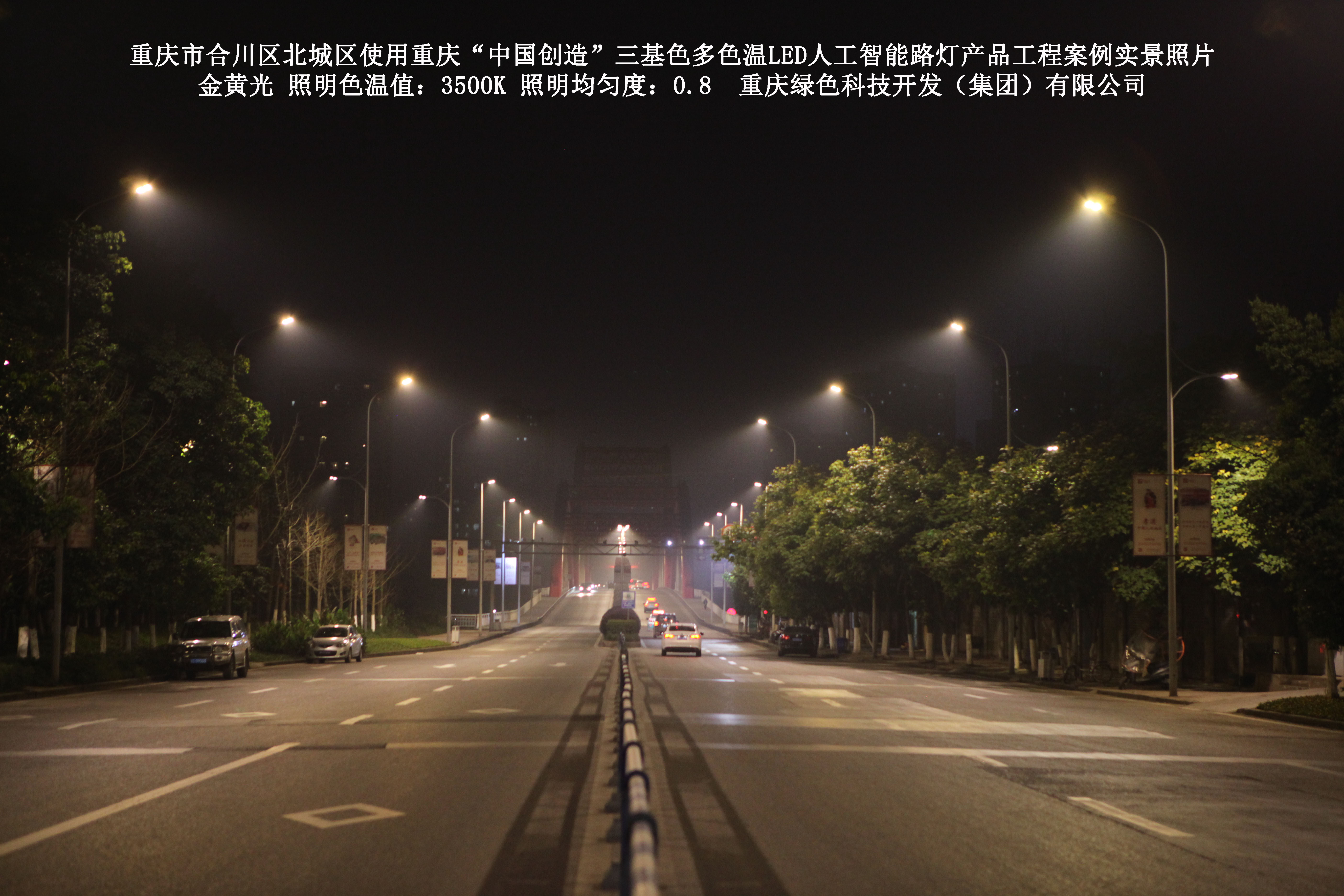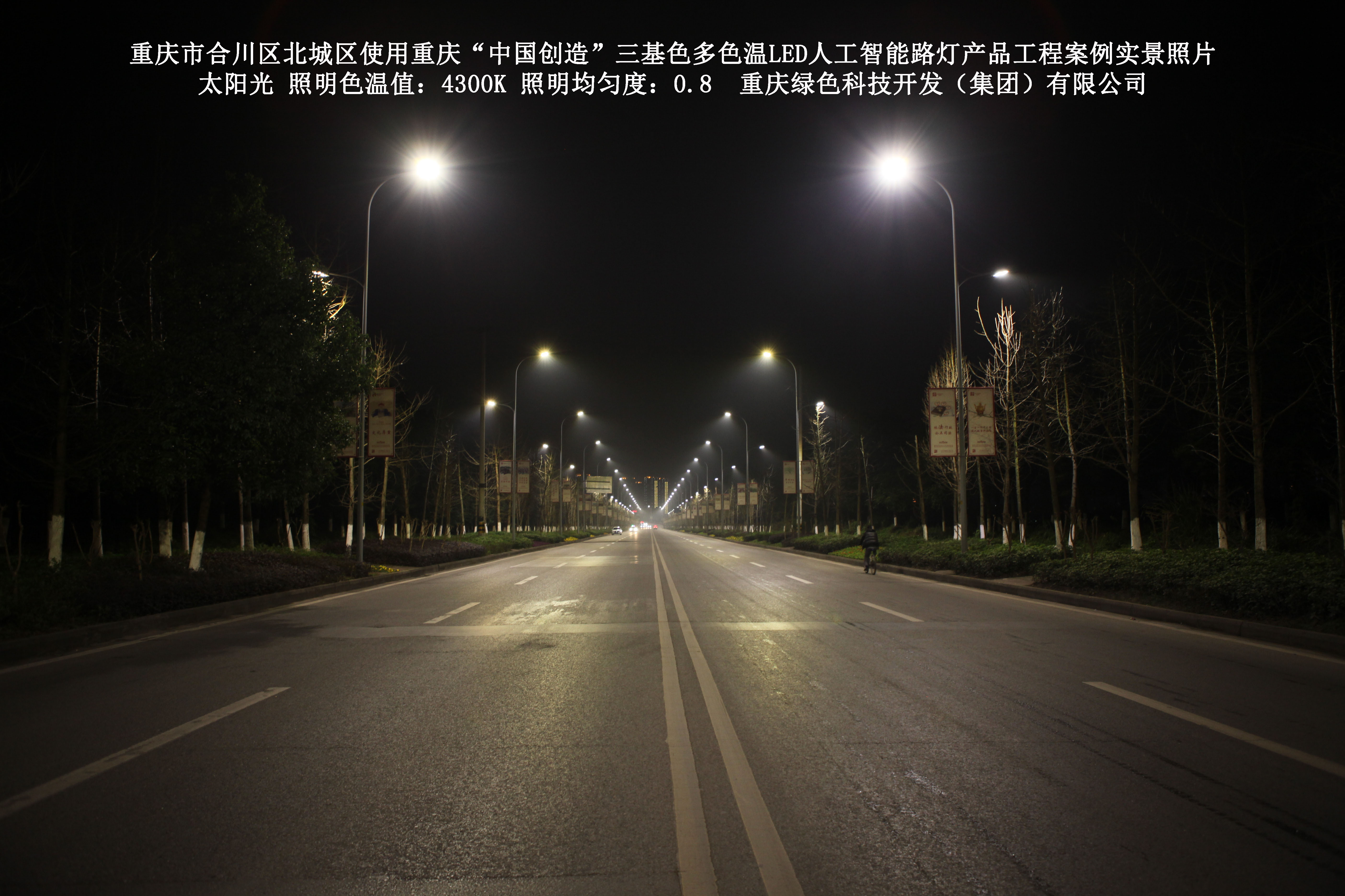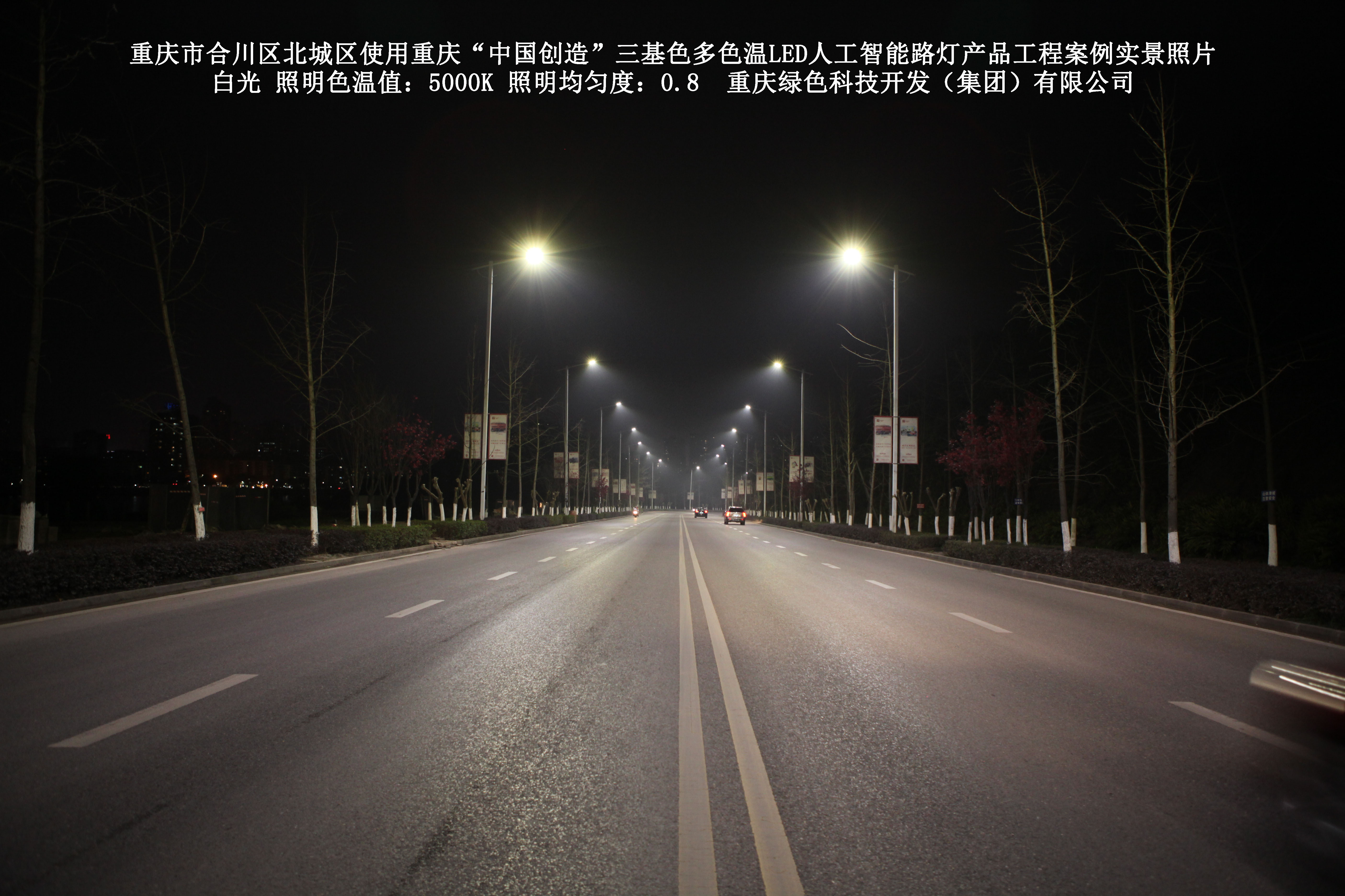 重慶市合川北城區(qū)使用我司研造的重慶“中國創(chuàng)造”三基色多色溫 LED人工智能路燈產(chǎn)品工程案例